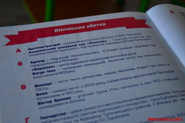 «Для вінницьких першокласників ми приготували два подарунки. «Книга вінницького школяра» –чудовий дидактичний посібник або довідник для 1-го класу, де розповідатиметься про Вінницю, Подільський край, загалом про Україну. Ми маємо свої легенди, своїх видатних людей у Вінницькій області, про яких, по великому рахунку, мало хто знає, а це є це наша історія. Другий посібник – «Жива абетка». Я думаю, першокласникам буде досить цікавою, тому що вона представлена в ігровій формі для дітей 6-7 років. На кожен перший клас у Вінниці закупили по 10 таких книг», – розповів Сергій Моргунов.