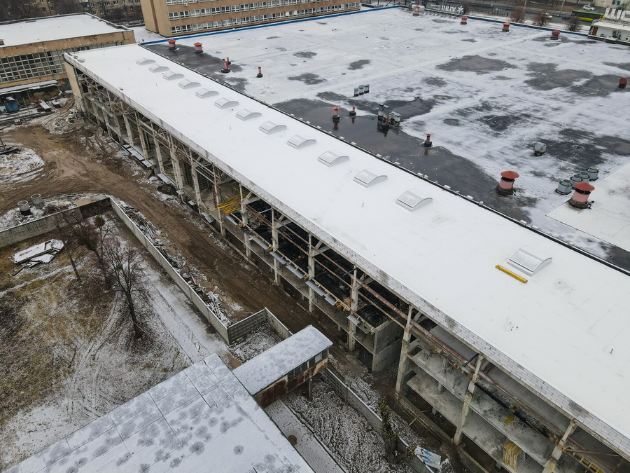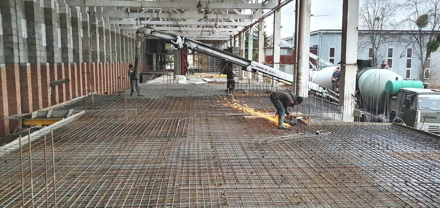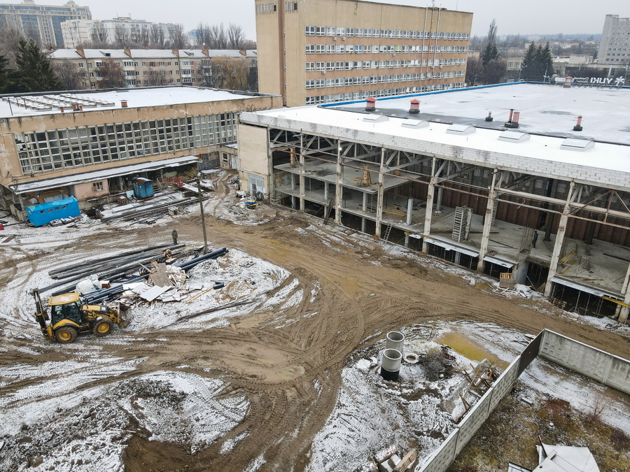 Роботи на об'єкті тривають. За спеціальною технологією підсилили стіни споруди, замінили дах, проклали частину комунікацій. Також будівельники заклали стовпчастий фундамент та монтують перекриття між поверхами.