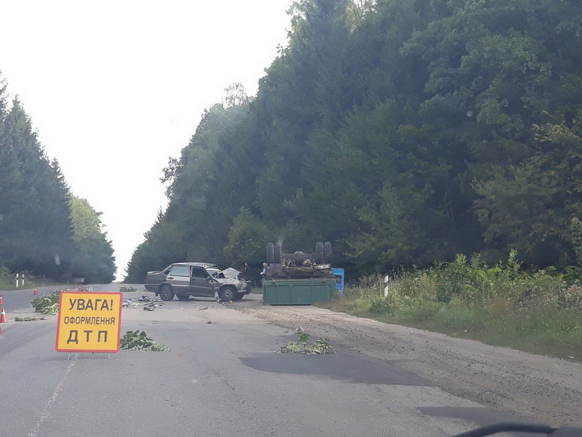 Під час зіткнення вантажний автомобіль перекинувся на дах. На місце події прибули медики швидкої допомоги. Постраждалих водіїв госпіталізували до Хмільницької центральної районної лікарні.