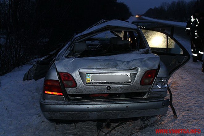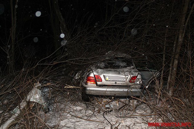 З’їхавший з дороги «Мерседес», у лісосмузі помітили водії служби таксі. Вони викликали швидку допомогу та поліцію. Біля машини у снігу лежали двоє чоловіків - водій та пасажир. Один з них загинув на місці пригоди, а другий каретою швидкої допомоги був госпіталізований у лікарню.