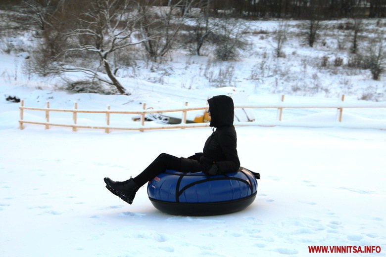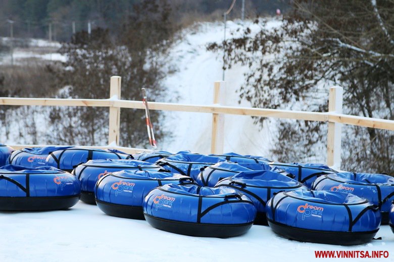 Тюбінг – це надувні санчата. Сідаєте на них зручніше, тримаєтеся обома руками за ручки – і з’їжджаєте. Потім тюбінг кріпите до підйомника. Вагових та вікових обмежень немає», - розповів журналісту Вінниця.info один з організаторів парку Андрій Коваленко.