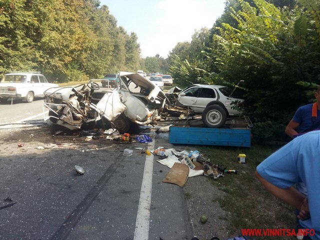 Користувачі в коментарях пишуть, що «Жигуль» з причепом пряммував в напрямку Хмельницького і водій виїхав на смугу зустрічного руху, де зіткнувся з іномаркою. Водій «копійки» загинув.