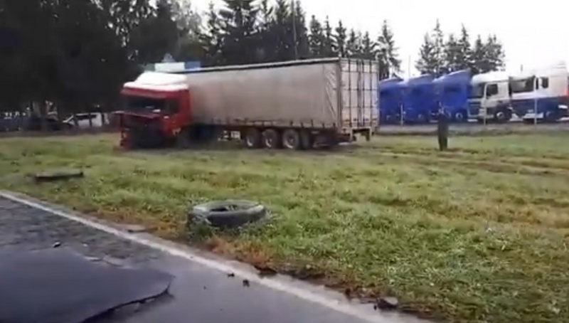 З відео, оприлюдненого в мобільних додатках видно, що гума на задньому колесі легковика «лиса».