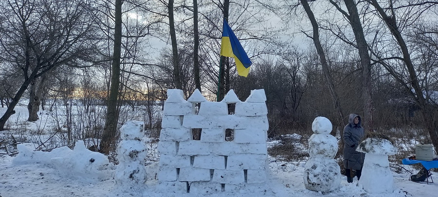 У селі Тютьки, що за 14 кілометри від Вінниці, місцеві жителі створили фортецю зі снігу. Та прикрасили її прапором України. До роботи долучилися і дорослі й малі. А наприкінці, частували учасників печивом та гарячими напоями.