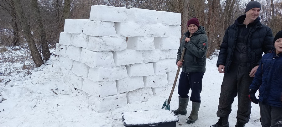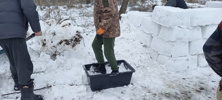 У Тютьках, вирішили не просто зліпити сніговиків, або інші фігури, а цілу фортецю. За місце її розташування обрали одну з місцевих ділянок. Звідки зібрали сніг лопатами. Велетенські «цеглини» формували у контейнерах прямокутної форми.