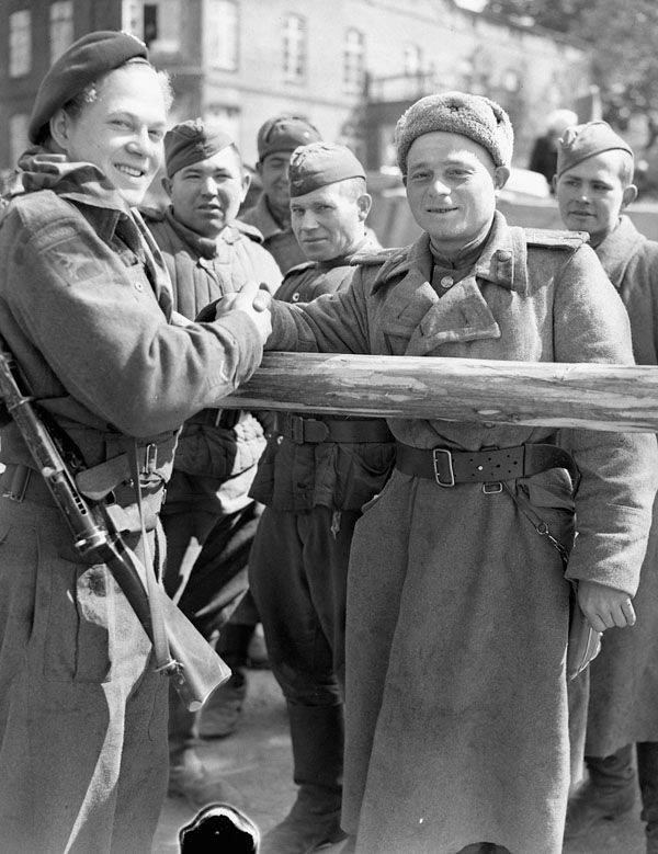 "На початку травня 1945-го, із заходу в напрямку міста Вісмар просувались частини британо-амеріканської коаліції. Здолавши слабкий опір Германських військ в районі містечка Гадебух, 2-го травня союзні частини зайняли Вісмар. Того ж дня зі сходу в місто війшли частини другого Білоруського фронту під командуванням маршала Рокоссовського.