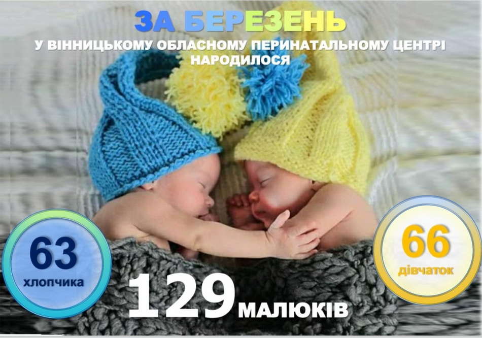Протягом березня у Вінницькому обласному перинатальному центрі народилось 129 малюка - 63 хлопчики та 66 дівчаток.