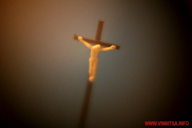 Скульптурне зображення Ісуса Христа. Хрест зроблений з обробленого волоса