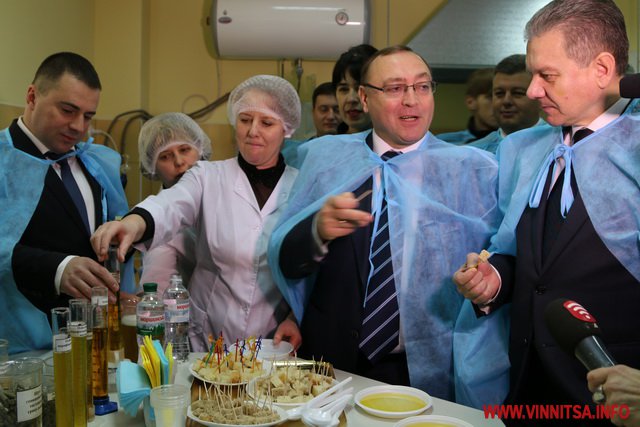 «На сьогодні ми експортуємо продукцію в 69 країн світу. На добу виробляємо майже 1500 тон масла. Зараз працюємо на олії соняшниковій. За добу вихід олії складає близько 1300 – 1400 тон. Завод може працювати на соняшнику, ріпаку, на сої, а також плануємо переробляти льон», - розповів голова правління ПАТ «Вінницький олійножировий комбінат» Дмитро Чаленко.