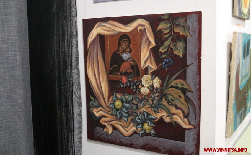 «Мене тут більше знають, як художника, котрий спеціалізується на сакральному мистецтві, оскільки я багато років займаюся дослідженням Подільської ікони, в мене є на цю тему статті та публікації. Сам я займаюся також розписом храмів. Працював з храмами і за кордоном. Я трошки в стороні показав свою ікону, оскільки тут більше презентовано світське мистецтво. Хоч я займаюся і світським мистецтвом, для мене головним залишається церковне, просто я його тут не показую», – розповідає Ростислав Моцпан.