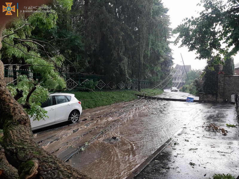 Ввечері 30 червня, Вінниччиною пройшлась негода: грози, град та шквальний вітер 15-20 м/с. Був об’явлений І рівень небезпечності, жовтий. Через це у обласному центрі, та деяких районах відбулись підтоплення та повалило понад 19 дерев. Загалом рятувальники відкачали 114 кубометрів води.