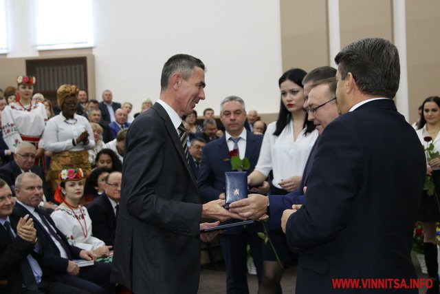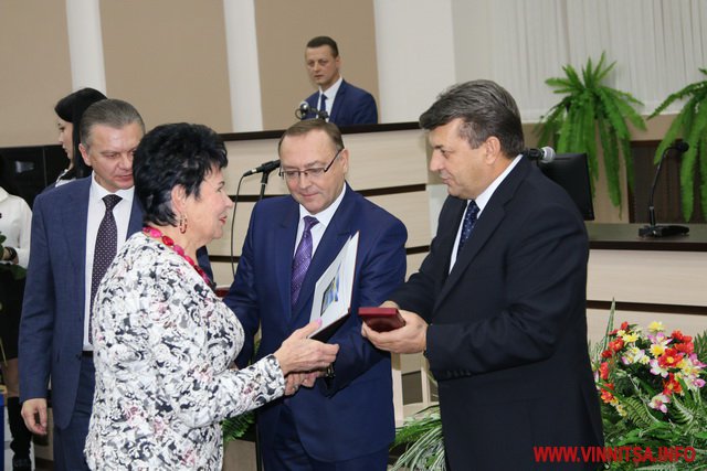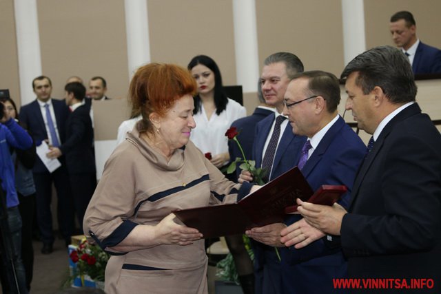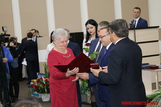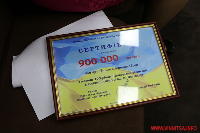 Вручаємо сертифікат на 900 тисяч гривень для придбання мікроавтобусу з нагоди 100-річчя Вінницької обласної клінічної лікарні», - сказав голова Вінницької ОДА Валерій Коровій.