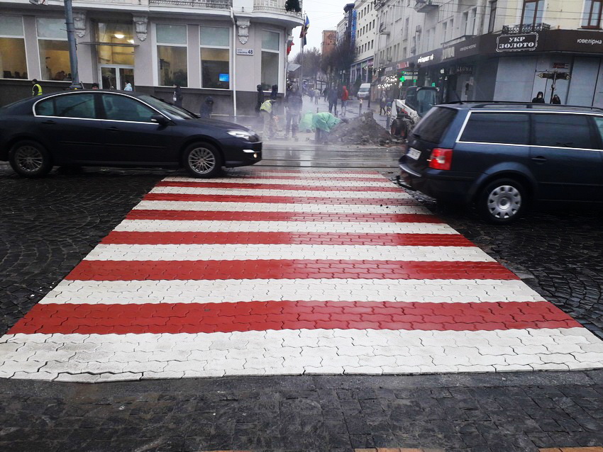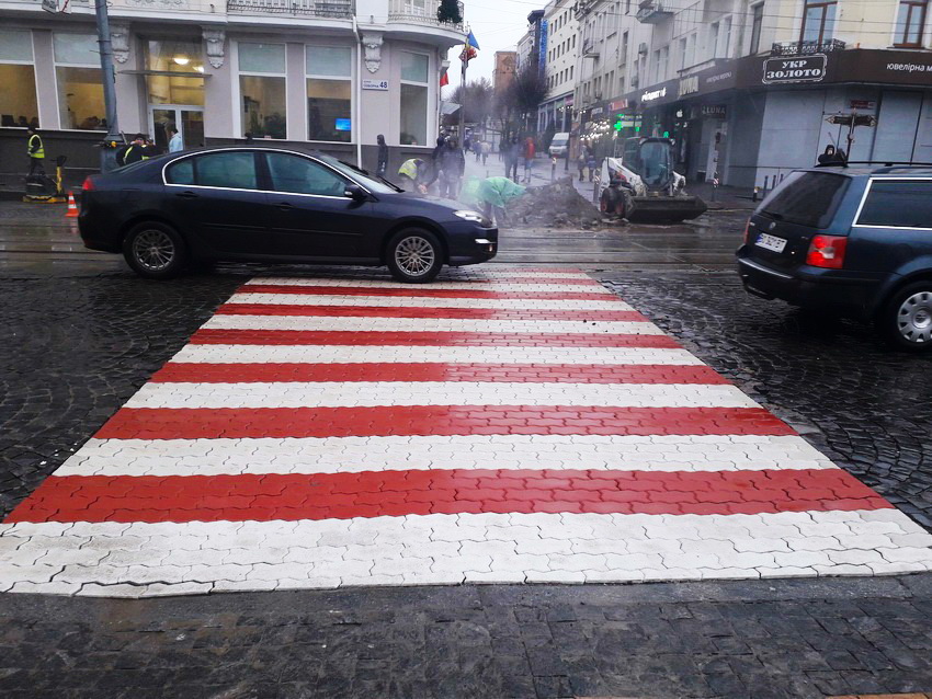 27 грудня, зранку, у центрі Вінниці завершують оновлення пішохідного переходу. «Зебру» перестеляють на вулиці Соборній, навпроти міської ради та «Савою».