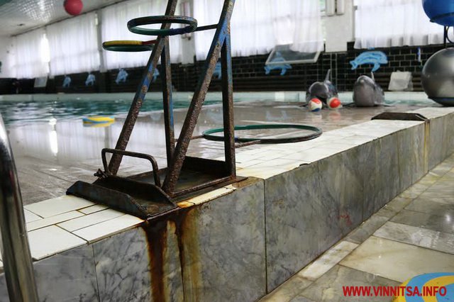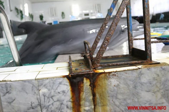 Побиті кахлі в басейні, де знаходяться дельфіни