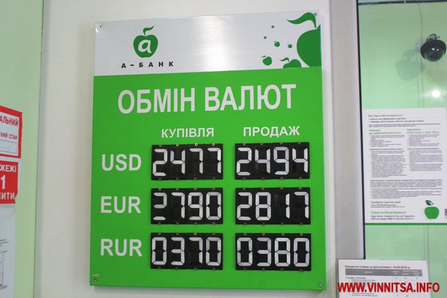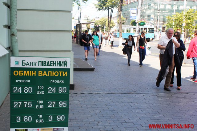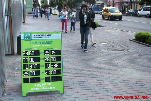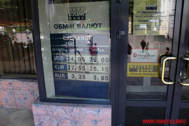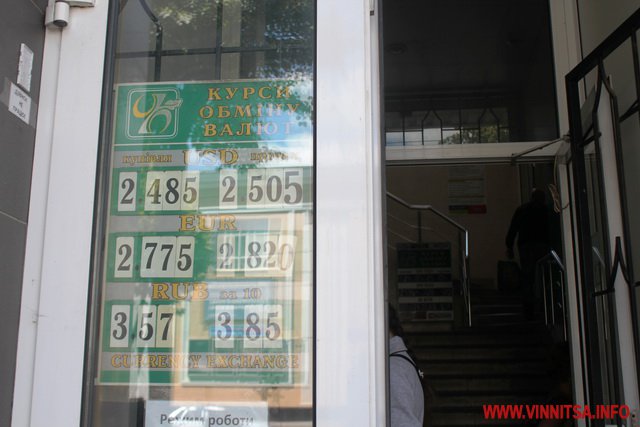 Сьогодні, 16 червня, банки у Вінниці розпочали день зі зміни курсу валют. У порівнянні з середою, станом на 10-ту годину середньо банківський курс продажу долара виріс з 24,86 грн/дол. до 24,88 грн/дол.