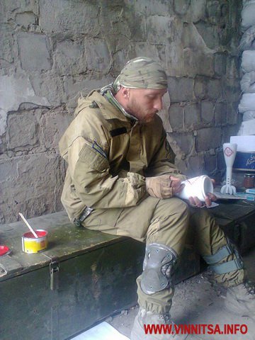 «Вирішив зупинитися на гільзах. Вони легші за болванки мін. Ну, і крім цього менше фарби уходить. Їх мені привозять друзі з передової. Вичищаю від землі. Малюю, коли є натхнення. Зображення загалом пов’язані з військовою тематикою. Інколи, навіть абстрактні об’єкти, як от на приклад – втома. Власні переживання переношу на метал», - продовжує боєць-митець.