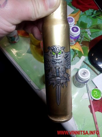 Вінничанин Олександр Гром – колишній боєць АТО. Після того, як повернувся на мирну частину України, розмалював кілька десятків 30-мілімітрових гільз від БМП-1. Використані патрони чоловіку привезли з передової.