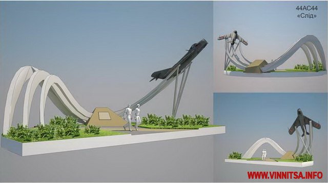 Згодом архітектори показали новий варіант проект під назвою «Слід»: три металеві хвилеподібні елементи, що символізують залишений повітряним судном слід у небі, невисокий постамент з мармуровим покриттям та інформаційна табличка.