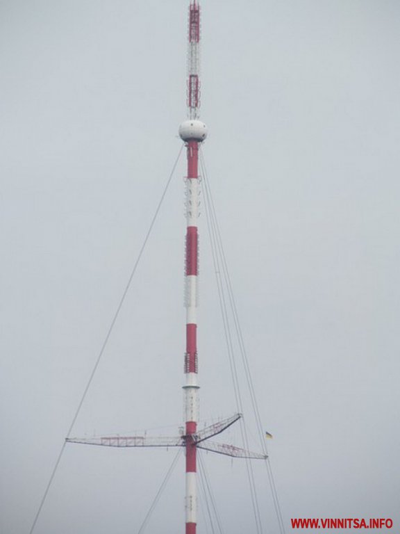 Вінницька радіотелевізійна вежа – це металева труба, діаметром близько двох метрів зі спеціальної сталі. Всередині труби знаходиться ліфт, який робить вісім зупинок і піднімається на висоту 309 метрів.