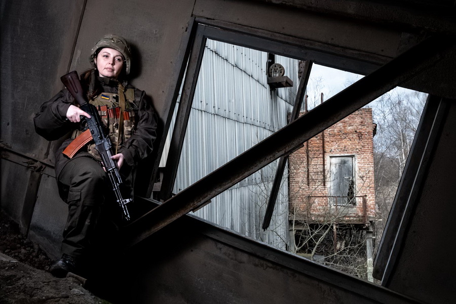 «Українські нацгвардійки прийняли участь у проєкті "Жінки на війні" від французького фотографа Жульєна Креспа.Як каже фотограф: «Я роблю портрети людей, щоб за їх допомогою донести до людей про події які відбуваються в Україні».