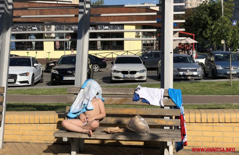 Після розваг біля води вінничани гріються на сонечку та відпочивають на лавочках. Багато хто відразу приносить з собою невеличкі перекуси для дітей.