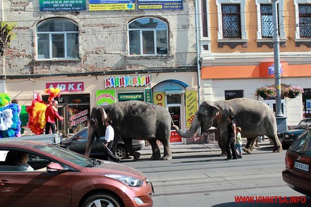 11 серпня жителі Вінниці спостерігали, як по місту возили слона на причепі вантажівки. Таку промоакцію влаштував будапештський цирк, який на гастролях в місті.