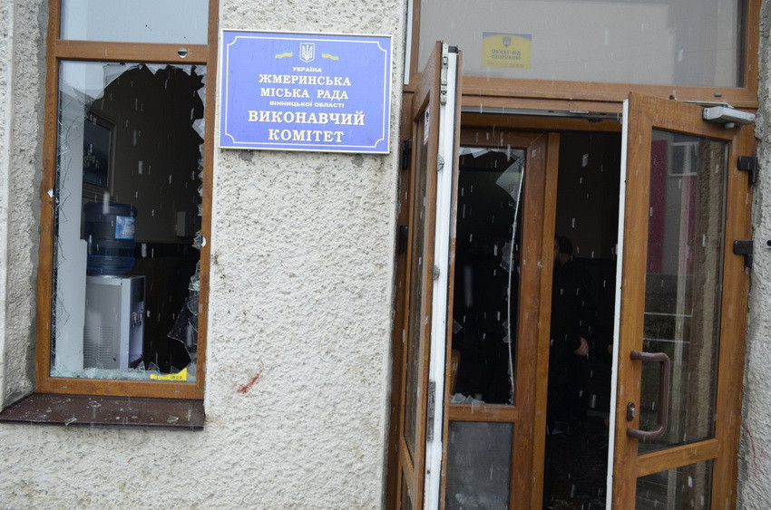 27 лютого у Жмеринці близько 30 осіб намагалися увірватися на сесію міської ради. Хлопці розгромили приміщення адміністративної будівлі, а також завдали тілесних ушкоджень, поліцейським і депутатам. Відомо, що під час сесії мали розглядати питання висловлення недовіри в.о. міського голови Юрію Світлаку.
