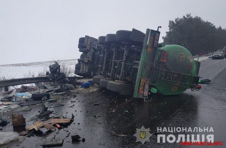 У результаті зіткнення вантажного «Мерседесу», бензовозу та легковика на місці події загинув водій вантажівки. У лікарню госпіталізовані водії інших двох автівок та пасажир «ВАЗу».