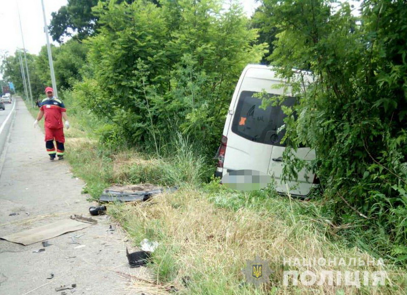 36-річний водій мікроавтобуса з закритою черепно-мозковою травмою, травмою ноги та численними забоями госпіталізований у лікарню.