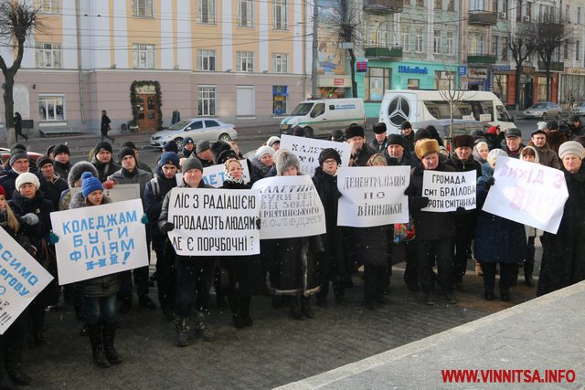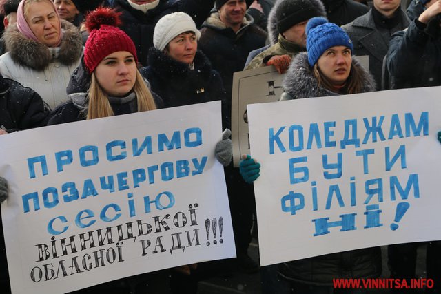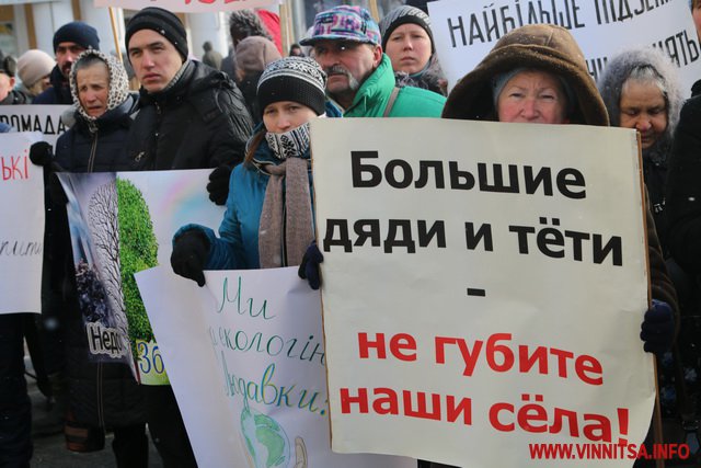 16 січня у Вінниці під стіни Вінницької облдержадміністрації з протестами вийшли жителі Жмеринського району. Мешканці села Людавка вимагають припинити роботи по будівництву сміттєпереробного комплексу, а викладачі Чернятинського аграрного коледжу просять владу відокремити навчальний заклад від Вінницького національного аграрного університету, до структури якого входять.