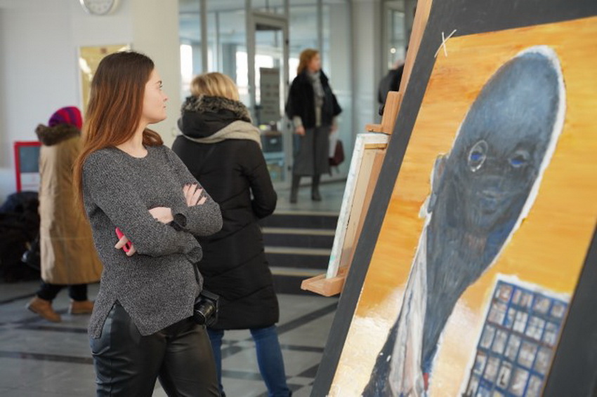 24 січня в холі Вінницької міської ради відбулося відкриття виставки «Подих війни». Роботи, які представили на ній, писали у вересні минулого року в Станиці Луганській українські та литовські художники. Організовували виставку Музей української марки ім. Якова Балабана, Посольство Литви в Україні та Вінницька міська рада.