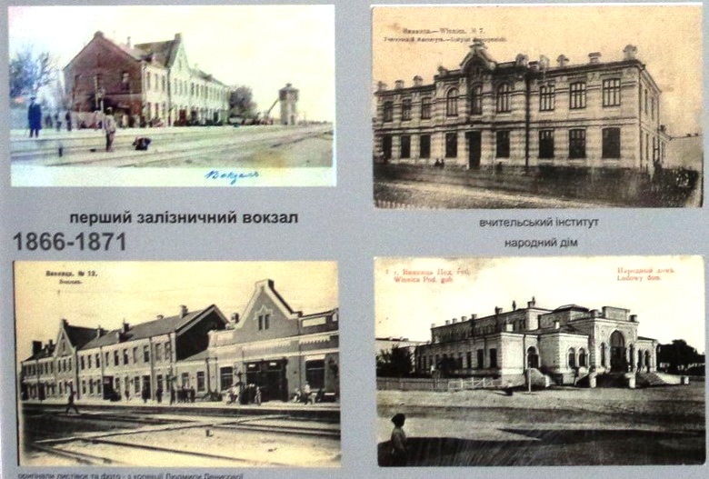 У фойє вінницького залізничного вокзалу розмістили виставку поштових листівок із зображенням Замостя. На фото – пейзажі Бугу, площі Героїв Чорнобиля (колишня Жовтнева), педагогічний університет, Палац культури, музей Коцюбинського, швейна фабрика «Володарка», «Ювілейний», готель «Південний Буг», будівельний технікум.