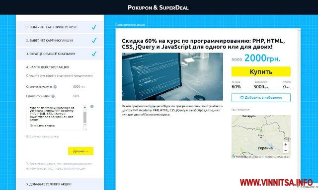 Новий сервіс дає можливість кожному бажаючому самостійно розмістити акцію на порталі, редагувати та вимикати її, переглядати повну статистику по обороту, переходам на сайт та інше.