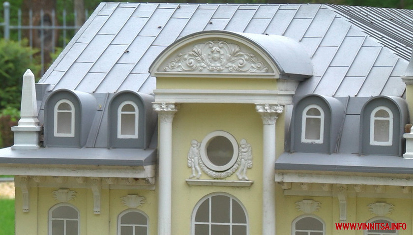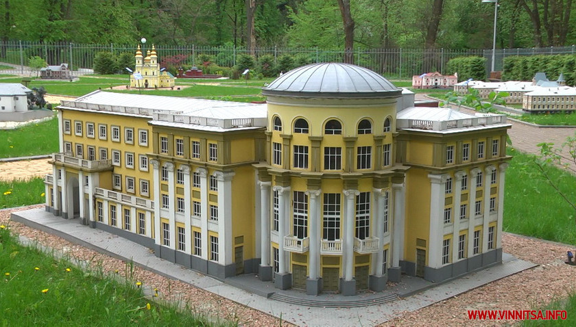 «Якщо ми будемо говорити про архітектурну епоху Григорія Артинова у Вінниці початку 20-го століття, то ця будівля зрозуміло, йде у розріз. Тому що в історичному центрі вона відрізняється колонами, такою помпезністю. І це стає зрозумілим, що зводили її вже за радянські часи. Коли Вінниця стала обласним центром. Це 1934 рік. Її тоді будували двома сільськогосподарськими трестами. Це спиртотрест і зернотрест. І для цих підприємств будівля мала стати адміністративною. Але, з 1946 року, приміщення відійшло під ОДА», - розповідає пані Іриною, з якою ми стоїмо біля копії приміщення, що розташовується у музеї під відкритим небом у міському парку імені Лаентовича. Який ще називають “Міні-Вінницею”.