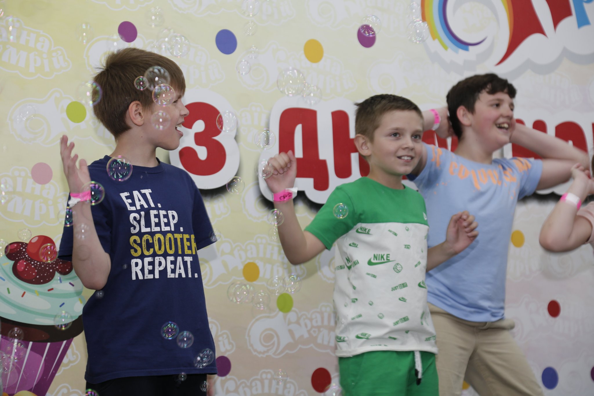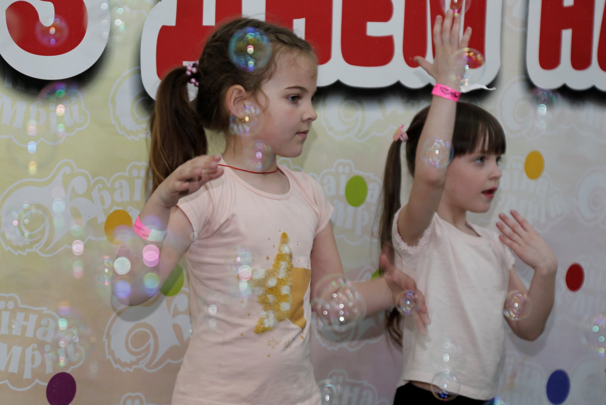Аніматори центру влаштували для гостей танці з мильними бульбашками, які кожен з присутніх намагався вхопити на льоту.