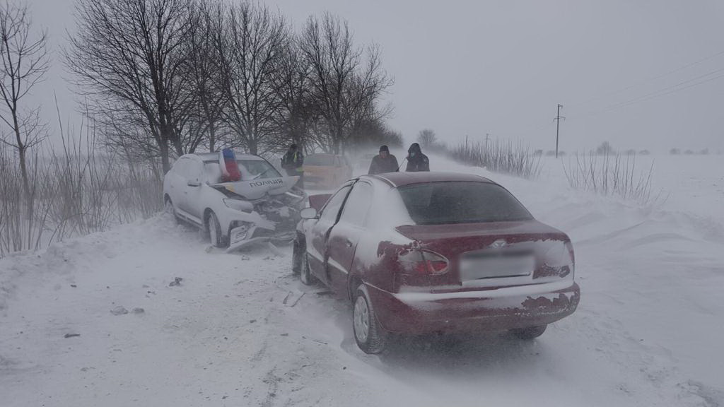 «Попередньо, автомобіль «Део Ланос», яким керував 29-річний місцевий житель на засніженій дорозі занесло на зустрічну смугу руху, де сталось зіткнення зі службовим автомобілем поліції «Рено Логан». У результаті аварії травмувались четверо людей.