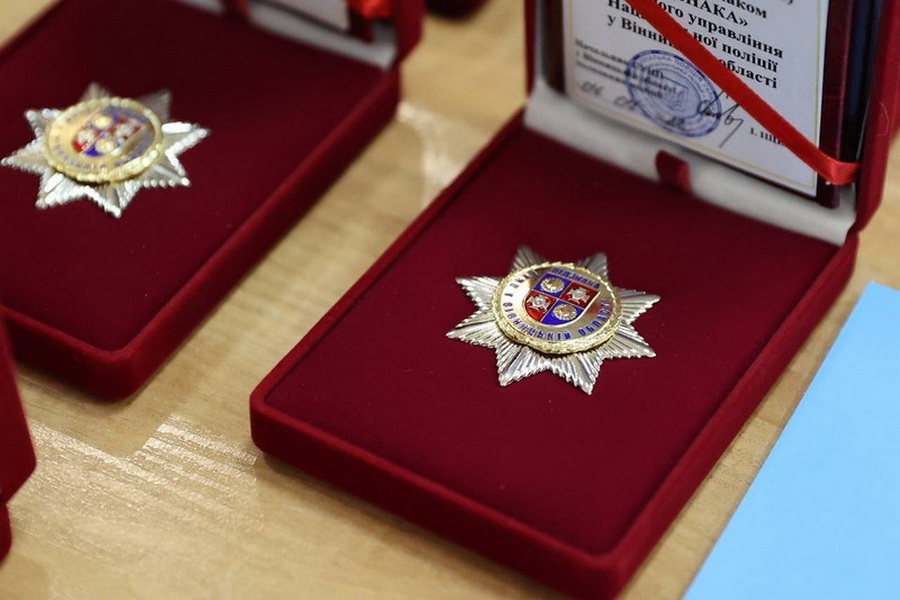 Начальник Головного управління у Вінницькій області зачитав наказ про присвоєння, у порядку заохочення, спеціальних звань працівникам поліції, а також нагородив кращих працівників почесним знаком «Відзнака» Головного управління Національної поліції у Вінницькій області.