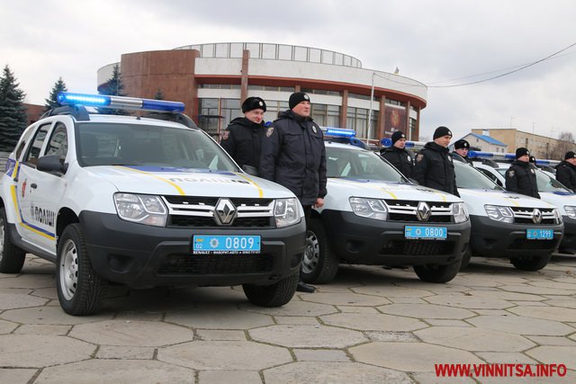 5 лютого дільничним інспекторам Вінниці вручили ключі від нових автомобілів. 10 «Renault Duster» придбaли зa 4 мільйони гривень з міського бюджету. Головне зaвдaння поліцейських – пaтрулювaти спaльні рaйони. Для цього облaсний центр поділили нa 10 квaдрaтів.