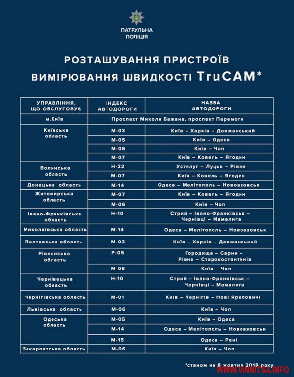 Поліцейські застосовуватимуть спеціальні пристрої Tru Cam в місцях концентрації ДТП, на аварійно-небезпечних ділянках доріг міжнародного та національного значення. Насамперед, така фіксація порушень швидкісного режиму є превентивним заходом.
