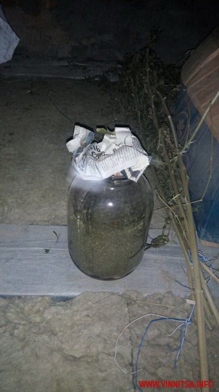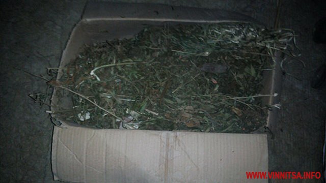 Під час обшуку у підозрюваного вилучили 450 грамів марихуани, картонний ящик, заповнений речовиною рослинного походження коричнево-зеленого кольору та трилітрову скляну банку, наполовину заповнену подрібненим канабісом.