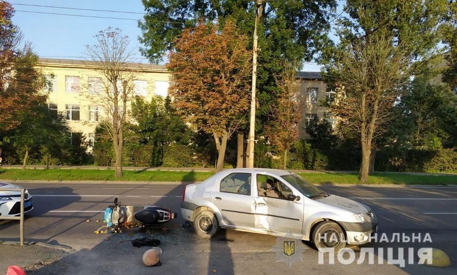 По вулиці Келецькій у Вінниці, 37-річна водійка автомобіля, під час виїзду з прилеглої території на головну дорогу, не надала переваги в русі та допустила зіткнення з мотоциклом.
