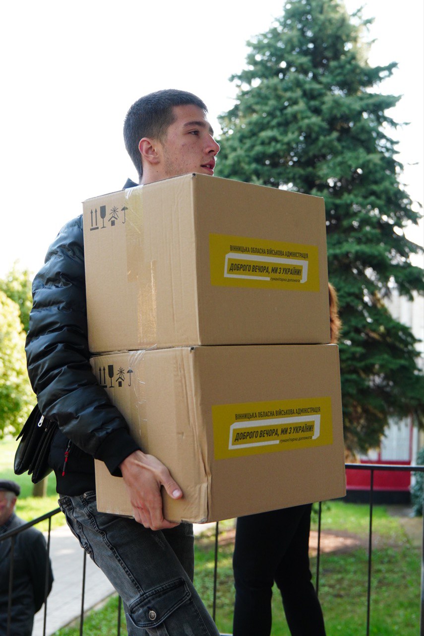«До вантажу, який ми підготували відповідно до онлайн запиту Ямпільської ТГ, входять продуктові набори, сформовані обласним гуманітарним штабом, завдяки міжнародним фондам та державній допомозі, яку Вінниччинаотримала з гуманітарних вагонів «Укрзалізниці». Такий набір продуктів розрахований на одну людину і включає 10-11 кг найнеобхідніших продуктів харчування. Також привезли засоби гігієни, постільну білизну, ковдри, жіночий та дитячий одяг, 13 матраців та 2 дитячі коляски для найменшеньких»,- коментує очільник ОВА Сергій Борзова.