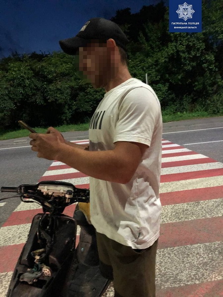 1 липня у селищі Стрижавка, що під Вінницею, патрульні поліцейські звернули увагу на водія мопеда Honda Dio, який рухався трасою міжнародного значення. Той був без шолома, але не це більш зацікавило правоохоронців. 26-річний чоловік був геть п’яний.