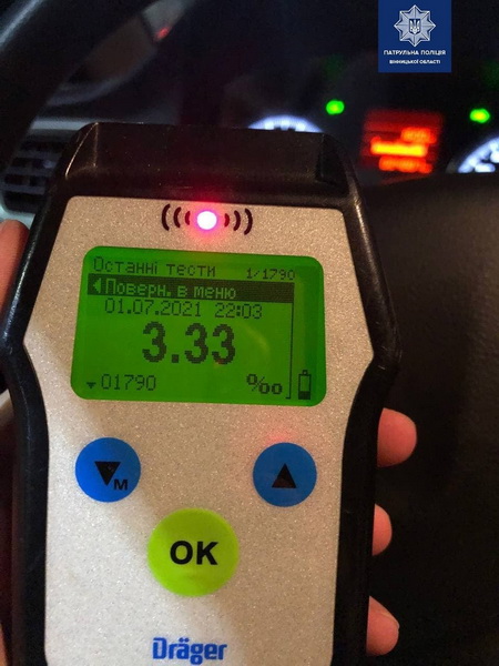 «Спілкуючись із порушником, інспектори помітили в нього ознаки алкогольного сп'яніння. Водій погодився пройти огляд на місці зупинки за допомогою алкотестера Drager. Результат огляду — 3,33 проміле, що майже у 17 разів перевищує допустиму норму. Крім того, транспортний засіб не був зареєстрований», - пояснюють правоохоронці.