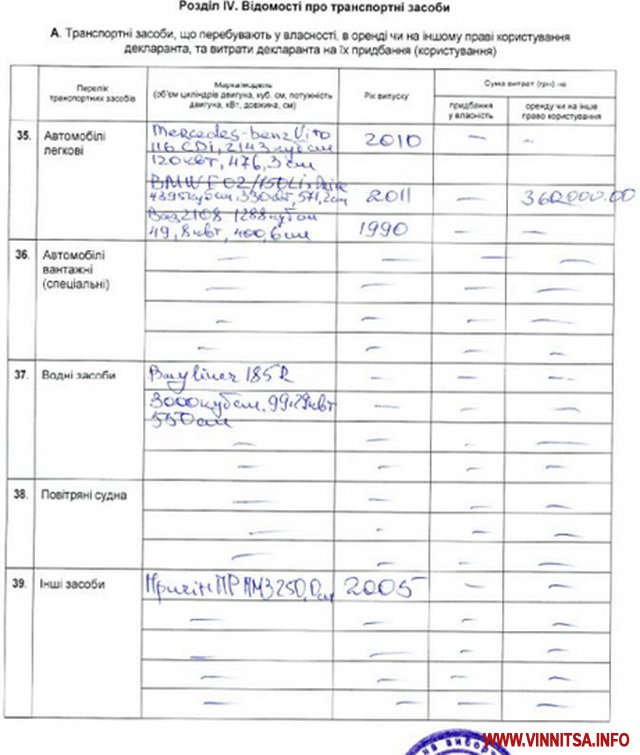Порошенко також володіє водним засобом Bayliner 185R з об’ємом двигуна 3000 кубічних см. Також він має причіп.