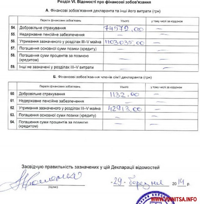 На добровільне страхування Порошенко витратив 74572 гривні, на утримання майна – 1103035 гривень.