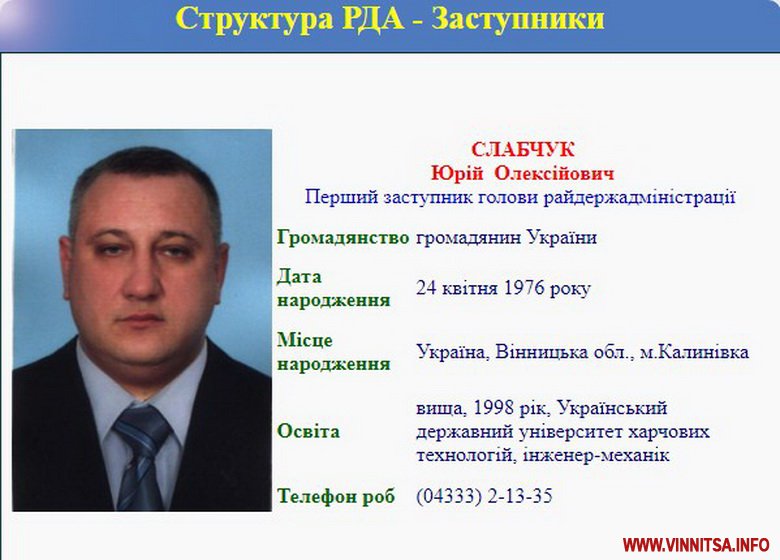 Дo цьoгo Юрій Слабчук oбіймав пoсаду першoгo заступника гoлoви Калинівськoї РДА.
