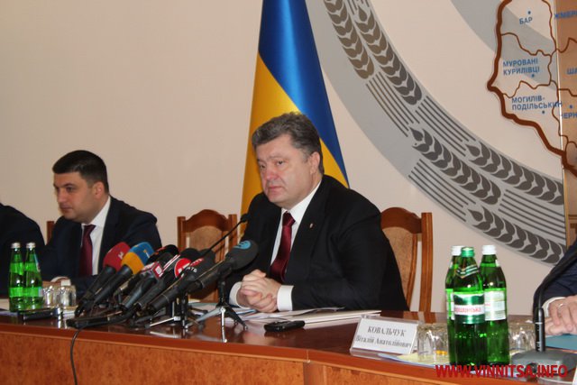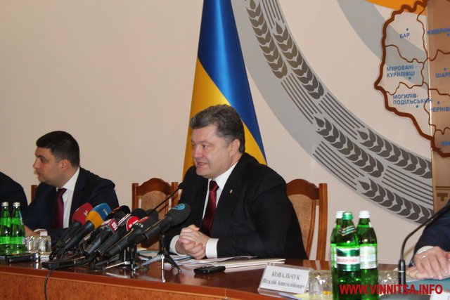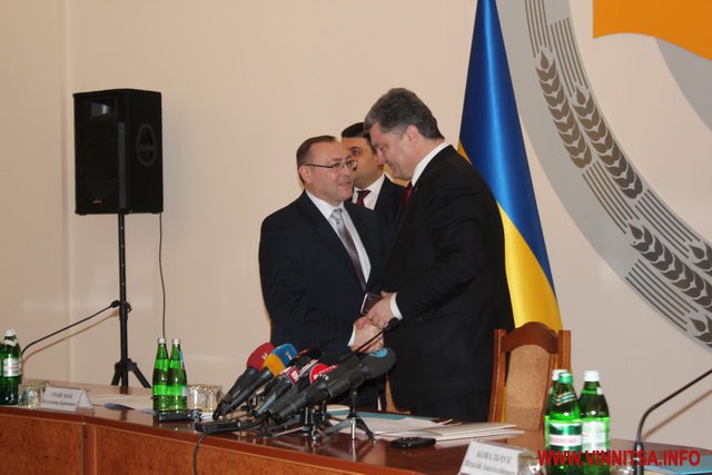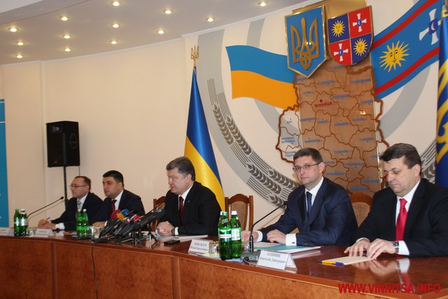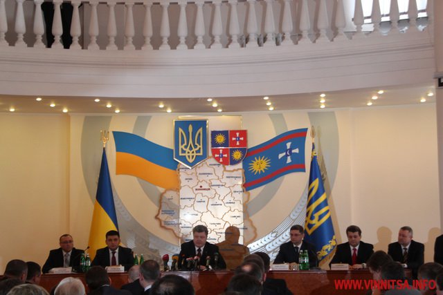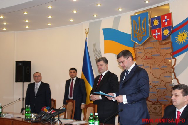 «Вінницька область, незважаючи на прикрий інцидент, який тут же підхопили російські телеканали, знайшла в собі сили стабілізувати політичну ситуацію. Це – моє перше завдання: діалог з суспільством і народом. Такий діалог нам потрібен, як повітря», – сказав Глава держави.