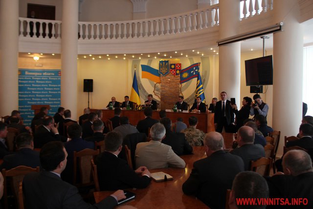 Глава держави особливо відзначив високий рівень виконання завдань з мобілізації в регіоні. «Перше, за що я хочу подякувати керівництву області, – за те, що Вінниччина сьогодні займає одне з перших місць в Україні з мобілізації. Це демонструє ставлення і патріотизм вінничан», – сказав Петро Порошенко.