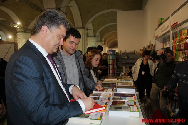 Під час ознайомлення з роботами українських видавців, Петро Порошенко мав змогу поспілкуватися з відомими письменниками, зокрема дитячим автором Іваном Малковичем та істориком Сергієм Плохієм.